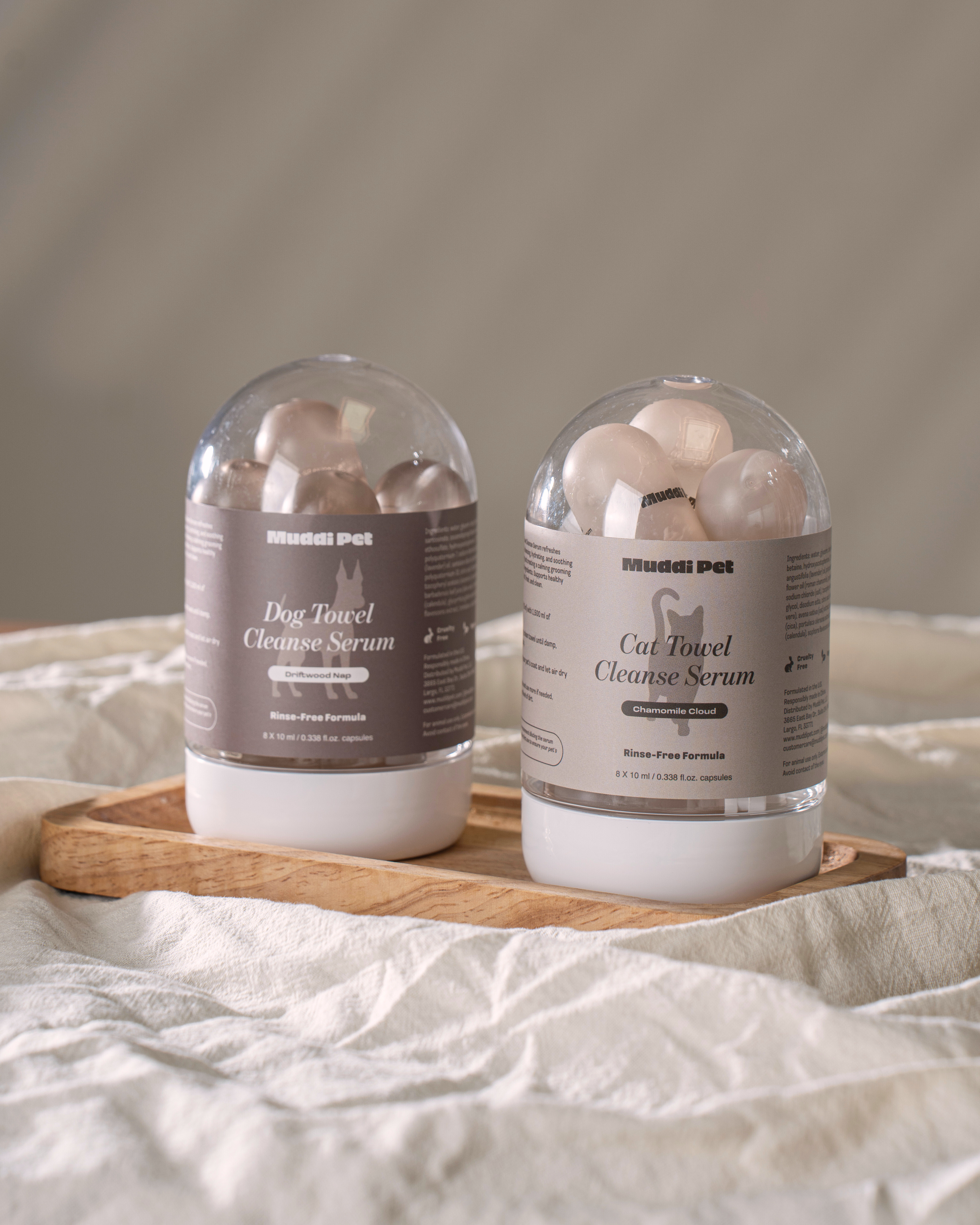 Muddi Pet is a modern take on pet care — our towel cleanse serum is rinse-free, refined, and rooted in clean ingredients. We also craft time-saving essentials that simplify your routine without compromising care.