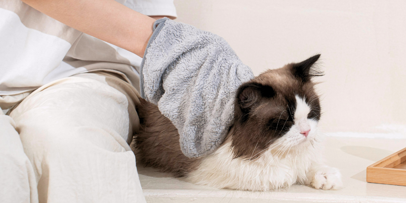 Step 2: Soak & wring a clean towel until damp and wipe your pet’s body.