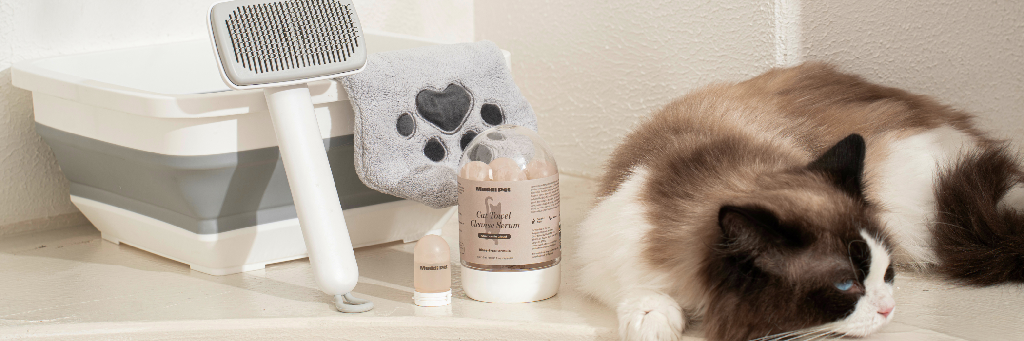 Muddi Pet is a modern take on pet care — our towel cleanse serum is rinse-free, refined, and rooted in clean ingredients. We also craft time-saving essentials that simplify your routine without compromising care.
