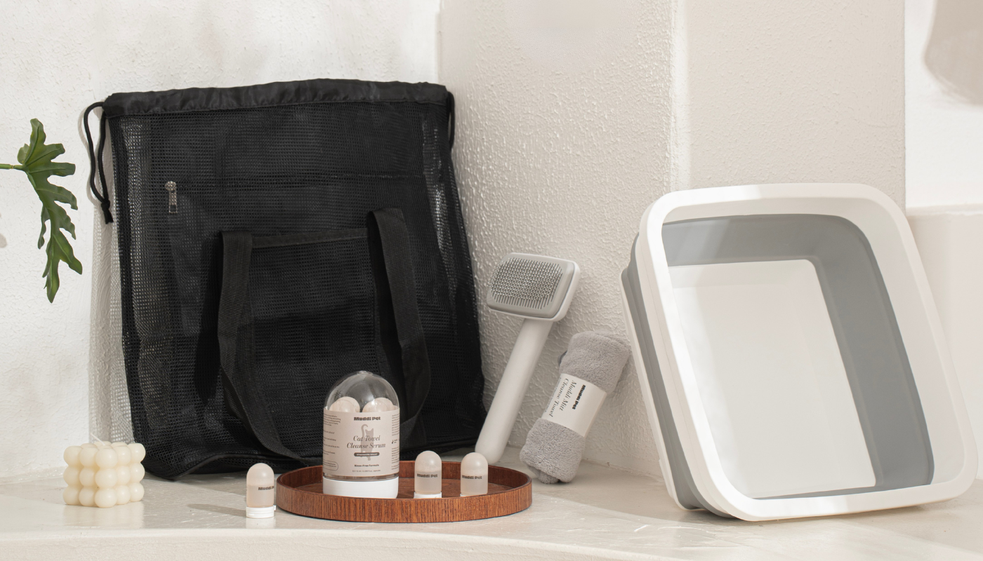 A front mesh pocket offers quick access, and an inner waterproof PVC pouch keeps wet items separate. Whether at home or on the go, it’s a versatile, multi-use tote made for clean, organized care.